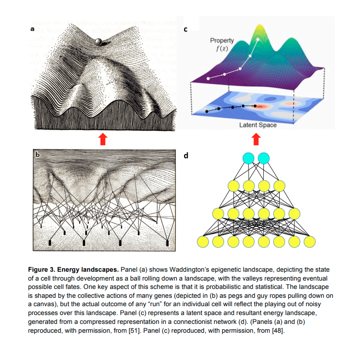The generative instantiation of an organism from only cells is a dynamic system. The organism proceeds in developmental stages, and when certain thresholds are met, the system transitions into new areas of the landscape.