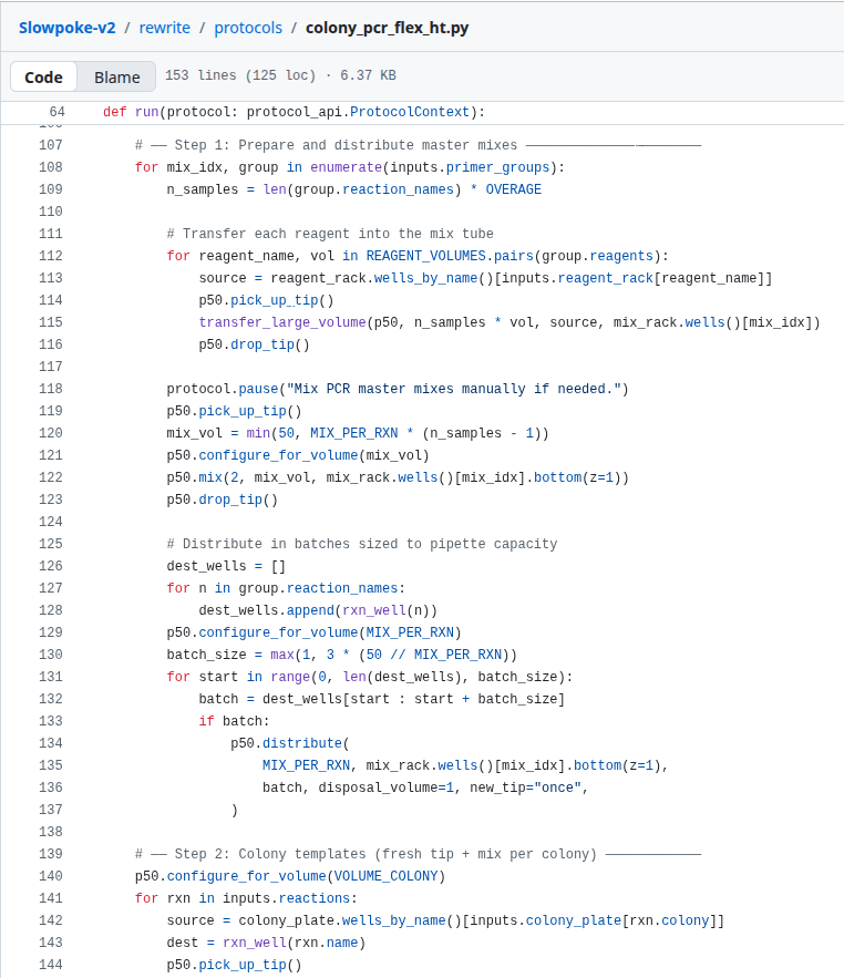 Well, earlier on I mentioned that there is this repo of code which runs a specific protocol. A protocol in molecular biology is a concrete sequence of experimental actions a person performs in the lab.